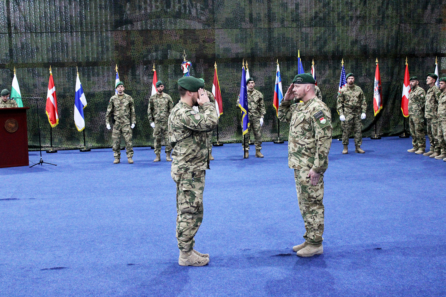 The FMC evaluation of the 34th rotation was followed by the transfer of authority ceremony on March 24th at Camp Novo Selo, in the presence of Major General Özkan Ulutaş, Commander of the NATO-led KFOR mission. The event was also attended by László Dux, Hungary's Ambassador to Kosovo, and representatives of other KFOR member nations. Lieutenant Colonel Gergely Herczog, commander of the 33rd rotation, handed over the leadership of the Hungarian contingent to Lieutenant Colonel Botond Hetényi. Major General Ulutaş expressed his gratitude to Lieutenant Colonel Herczog for his outstanding service and welcomed Lieutenant Colonel Hetényi. The Major General noted their successful previous cooperation, expressed his enthusiasm for continuing their work together, and wished him a successful mission for the upcoming six months.