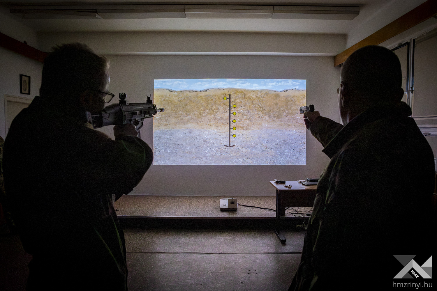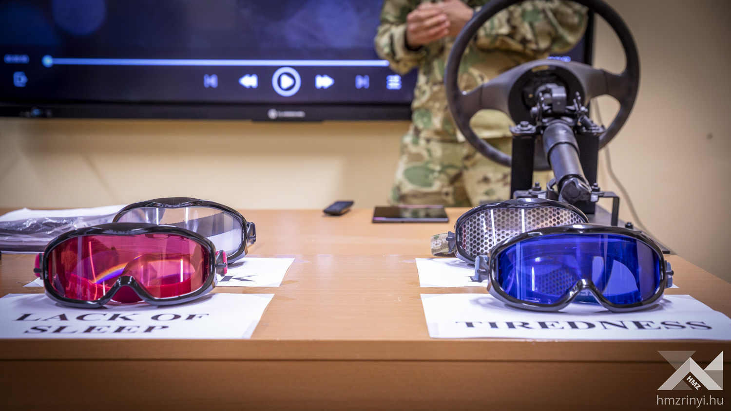 With the assistance of instructors in charge of public road and off-road driving courses, the foreign guests tried out the motor vehicle and truck simulator used for modeling emergencies, as well as the goggles imitating insomnia, fatigue and different influences. They were introduced to the operation of the shooting simulator and its role in NCO training during various simulation practices conducted with the use of realistic assaults rifle and pistol models, while they were testing and assessing their own skills as well.