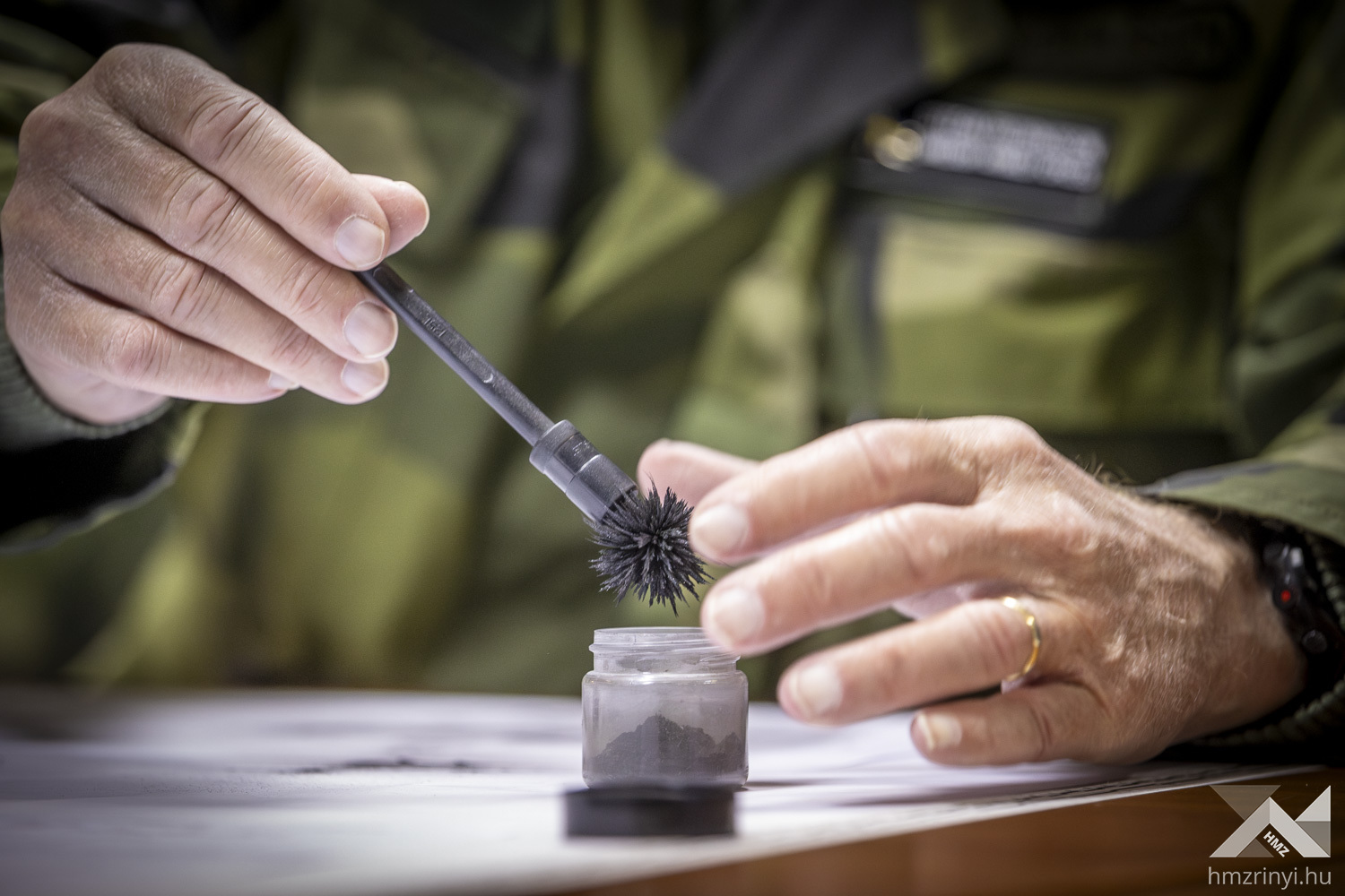 In the framework of another dynamic demo, the members of the BMAC were informed about the improvised explosive devices (IEDs) that are currently widespread and frequently found in theatres of war around the world, and also about odor samples used as manipulative tools. During a presentation given by a Weapons Intelligence Team (WIT), the attachés also learnt about the proper methods of conducting conventional fingerprint collection.
