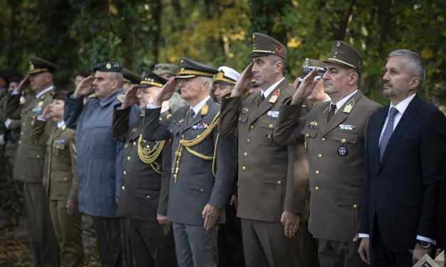 On behalf of Hungary, wreaths were laid by MoD Deputy State Secretary for Human Resources Dr. János Czermann; Colonel Imre Szűcs, Deputy Commander, HDF Territorial Defence and Military Augmentation Command; and Colonel Ferenc Schleisz, Deputy Commander, HDF Transformation Command. Major General Tibor Králik, Commander, Headquarters Multinational Division – Centre (HQ MND-C) also paid tribute to the memory of the soldiers laid to eternal rest.