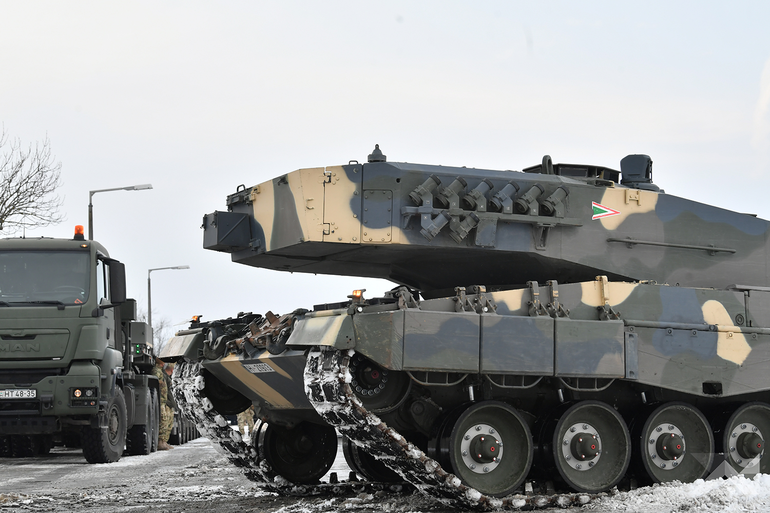 He underlined that four vehicles left from Tata on Wednesday: two Leopard A4 battle tanks to Miskolc and two Wisent cargo trucks to Veszprém.